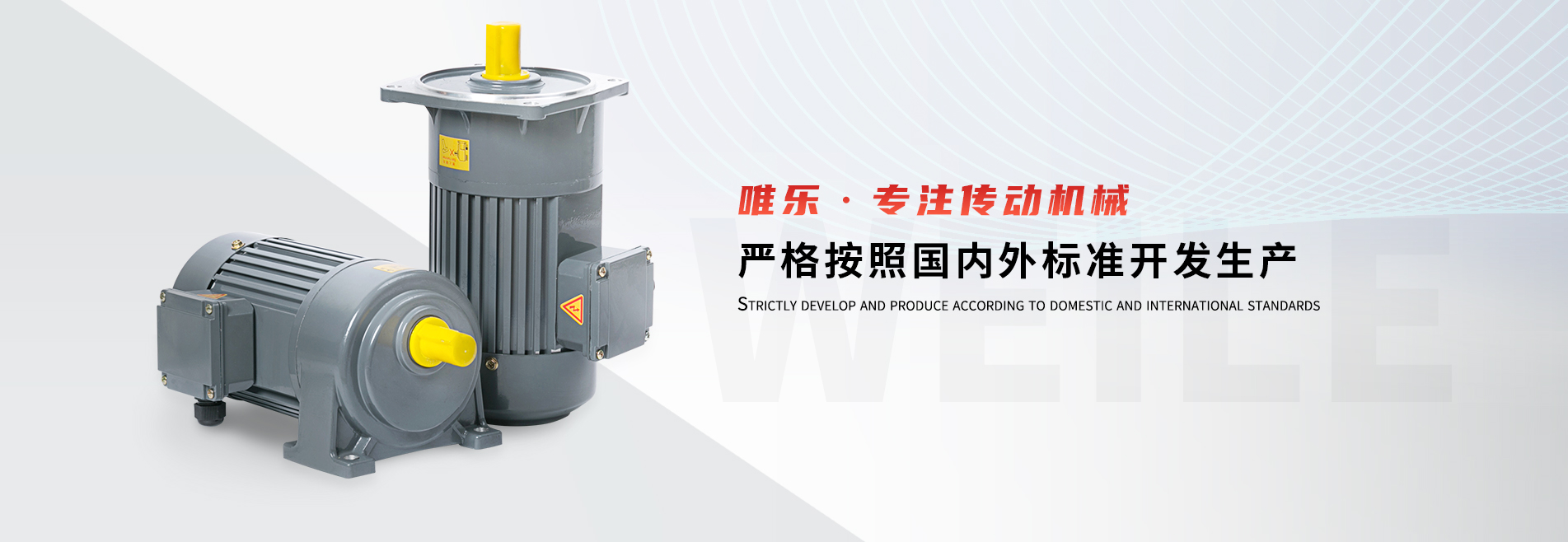 唯樂工業設備有限公司座落在風景秀麗的溫州永嘉工業重鎮-浙江省溫州市甌北鎮。公司主要從事生產銷售“電動機” “減/變速機” “齒輪減速馬達”“硬齒面減速機”四大類產品。